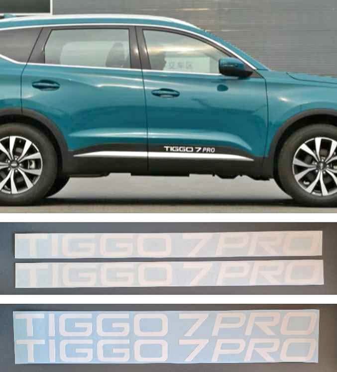 Chery Tiggo 7 Pro lower door side stickers decals Chery Tiggo 7 Pro lower door side vinyl cut stickers. These top quality decals are precision machine cut from the very best quality durable exterior grade long life vinyl that is UV, water and fade resistant. The size o...