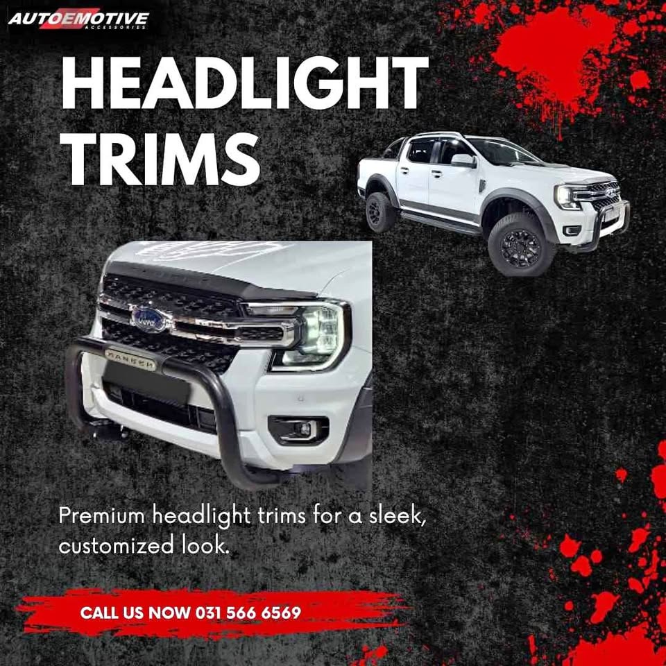 Ford Ranger Headlight Trims Complete your bakkie's look and functionality with our range of accessories: Tonneau cover Flip-lid Sliders Dividers Extenders Racks Roller shutters Auto roller shutters Tri-fold Nudge bars Roll bars Styling bar...