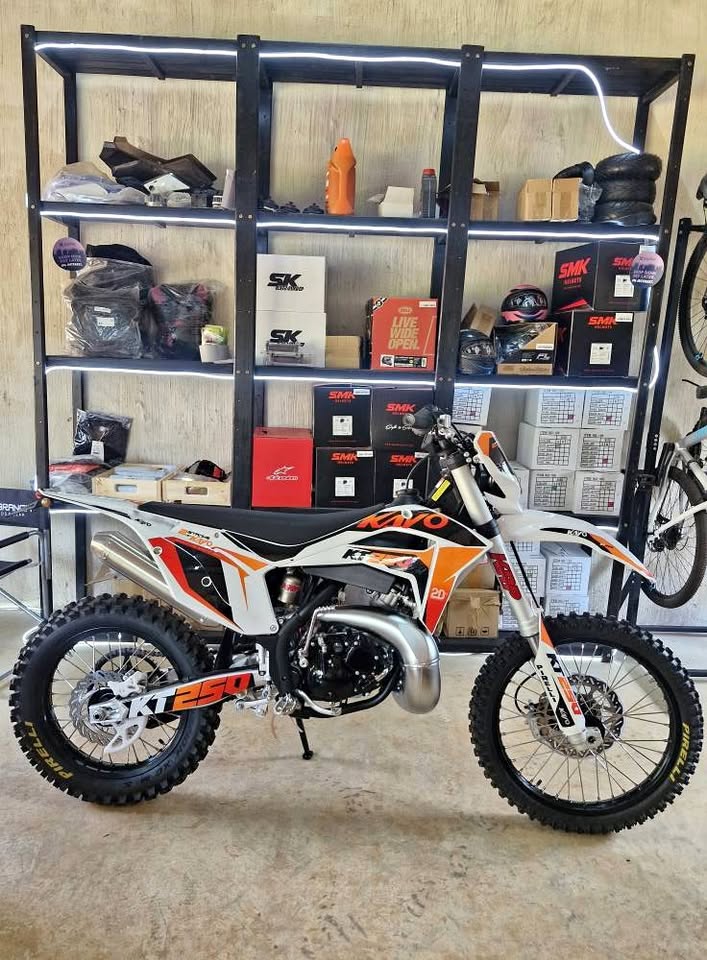 Used Kayo KT250 Enduro New KT250 Specifications: 1 Engine Engine Type 2-Stroke, Water Cooling, Manual, 6 Gears Displacement 250cc Compression Ratio 6.5:1 Max Power 26 / 8000 kw/rpm Max Torque 30 / 7500 N.m/r/min Fuel System PWK 38 Carburetor ...