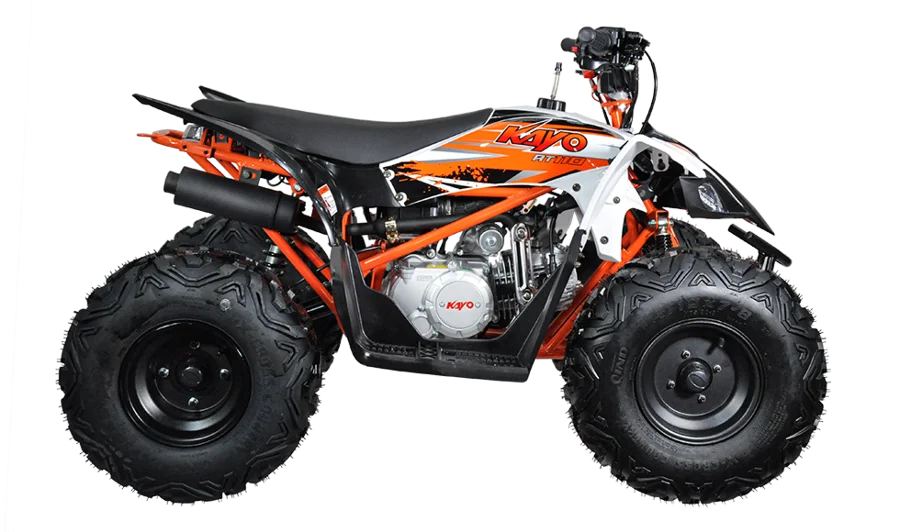 New 2026 KAYO AT 110 KAYO AT110 For kids and teens interested in riding their ATV beyond the trail. 107.0cc 4-Stroke Air Cooled Engine Automatic Transmission with R-N-F Adjustable Rear Suspension Parent Remote Engine Kill Switch. R18 995
