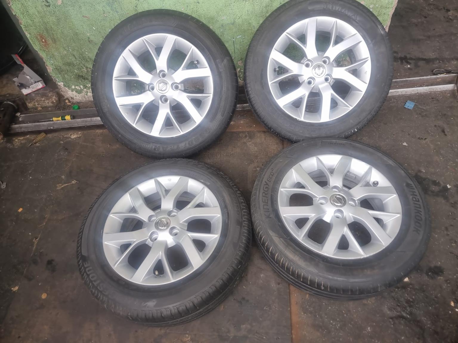 15inch Nissan Almera original mags with used 185/65/15 tyres set for