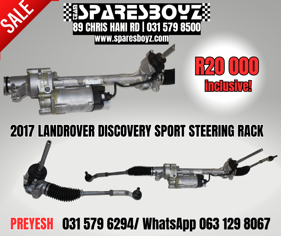 2017 LANDROVER DISCOVERY SPORT NEW STEERING RACK FOR SALE For a limited time only, Sparesboyz is offering the incredible 2017 LANDROVER DISCOVERY SPORT STEERING RACK at an amazingly LOW PRICE of just R20,000, including VAT!