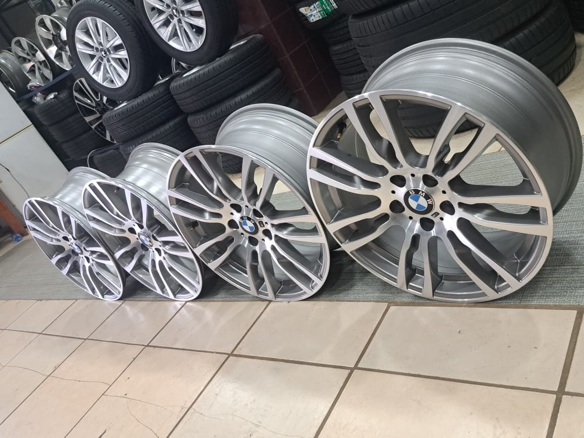 A set of 19inch BMW f30 original mags narrow and wide WhatsApp chingy for more information and the location of tyres , rims, and parts for Toyota bakkies on