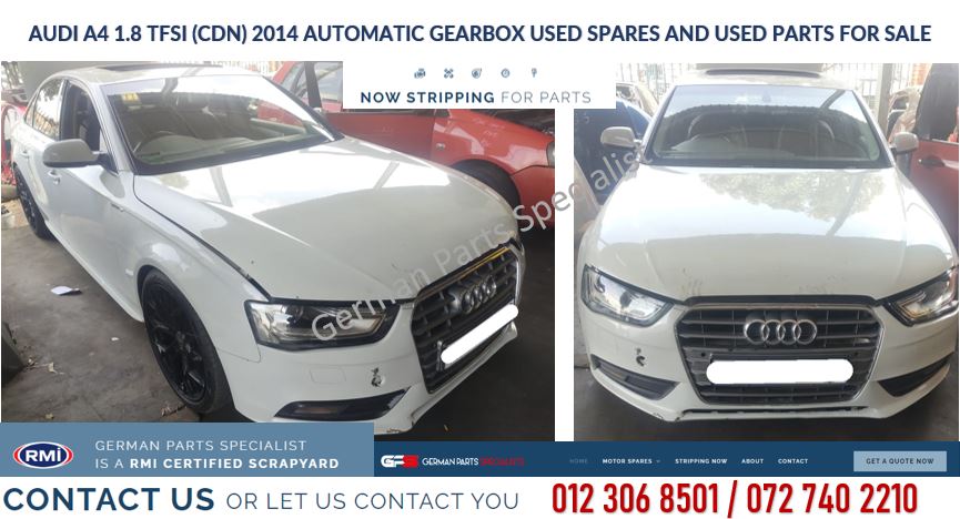 Audi A4 1.8 TFSI (CDN) 2014 Automatic gearbox used spares and used parts for sal German Parts Specialist is currently stripping / breaking an Audi A4 1.8 TFSI (CDN) 2014 Automatic gearbox for used spares and used parts.