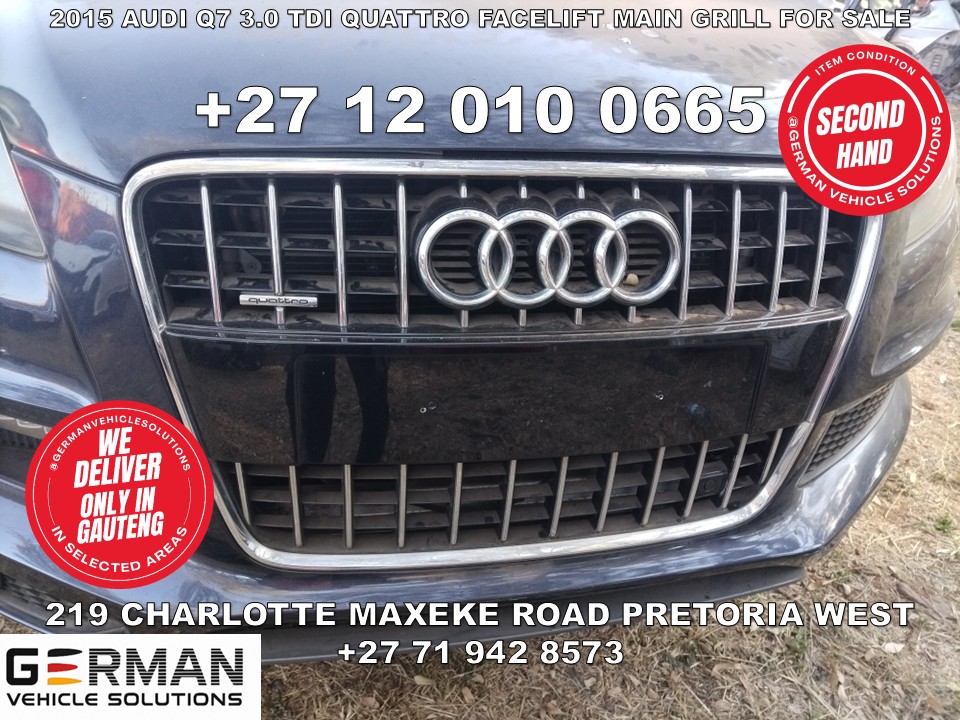 Audi Q7 3.0 tdi quattro facelift front main grill for sale the main grill from a 2015 Audi Q7 3.0 tdi quattro facelift is now available. this stylish Audi Q7 front grill gives your vehicle that bold and clean factory finish. it's the exact fit for the Audi Q7 facelift model, des...