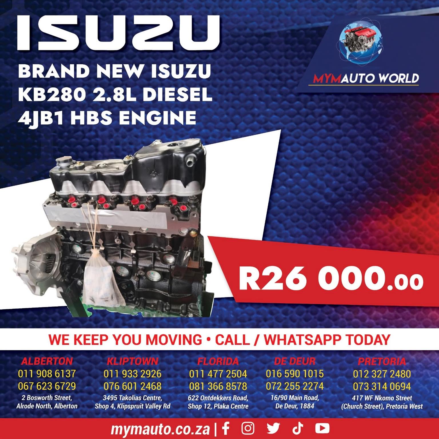 Brand new isuzu 4jb1 head block n sump for sale at MYM ALBERTON Essop 0681898795 For all cars n bakkies I have quality imported low mileage Engines n Gearboxes with warranty call Essop on 068 189 8795 from MYM AUTO WORLD in alberton Johannesburg for more information 😀 😄 👍