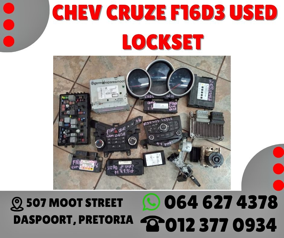 Chev Cruze F16D3 Used Lockset CHEV CRUZE F16D3 USED LOCKSET for Sale! ✅ Don’t forget, we stock loads of New & Used spares for Suzuki and Opel too. 📞 Contact us now for the best deals. •Landline: •WhatsApp: HAPPY - •Website: www.germansparesmoot.c...