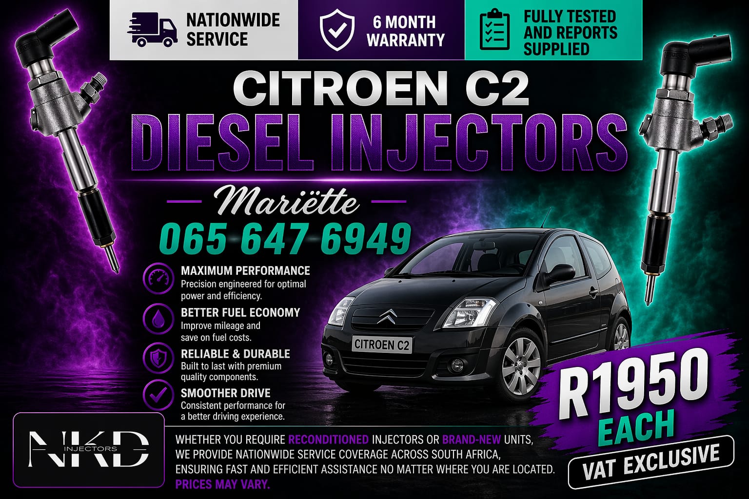 Does your vehicle has power loss, hard start, black smoke or un for seen engine noise?? @ NKD Injectors we can professionally assist you to recondition your own injectors with 6 months warranty & FREE...