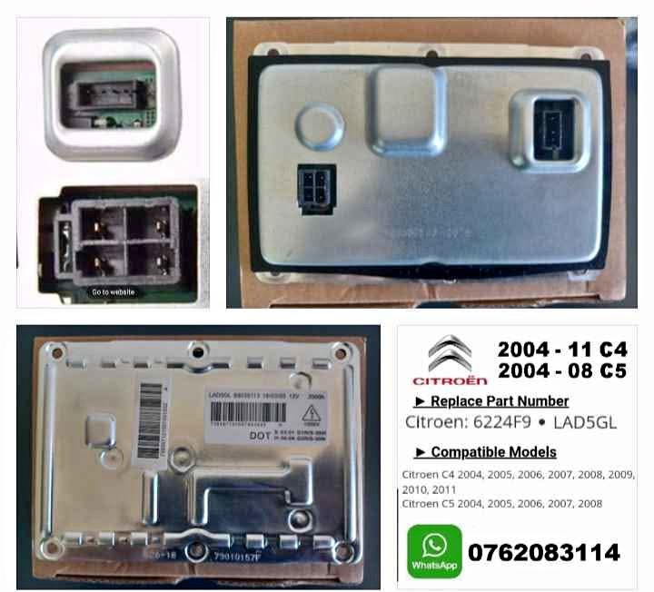 Citroen C4 C5 Headlight Xenon Ballast control module Citroen headlight xenon ballast control module. Brand new sealed unit. OEM Part numbers 6224F9 and LAD5GL ( Valeo manufacturer part number ). As used on the 2004 - 2011 C4, the 2004 - 2008 C5 and others. DIRECT REP...
