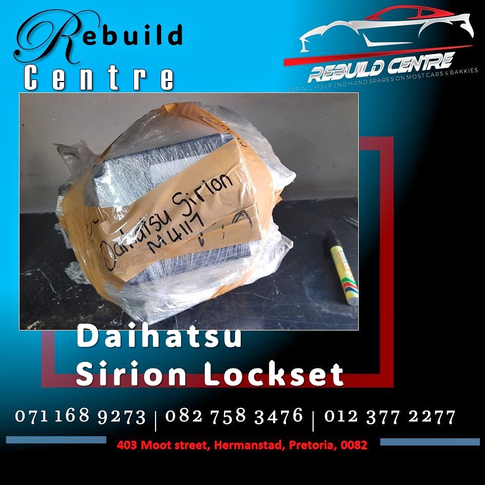 Daihatsu Sirion Lockset for sale Rebuild Centre Contact us today for Quality ORIGINAL secondhand spare parts for your car. -Landline - Admin - Langman. or come and give us a visit at 403 Moot street, Hermanstad