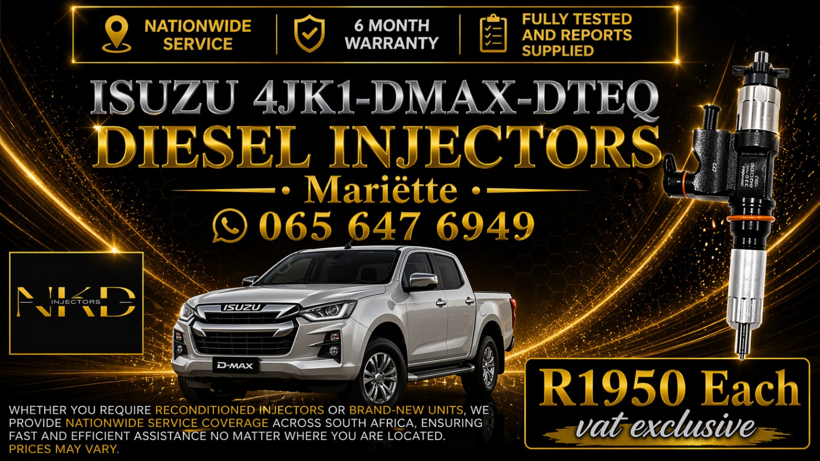 FULLY TESTED & REPORTS SUPPLIED ISUZU 4JK1 NKD INJECTORS – INJECTORS NATIONWIDE AT YOUR DOOR