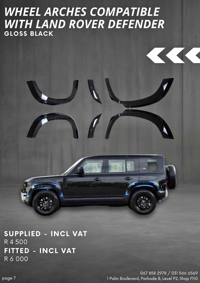 Gloss Black Wheel Arches compatible with Land Rover Defender - Fitted Popular Products we offer: • Roller Shutters • Side Steps • Bonnet Guards • Mud Flaps • Roof Rails • Tonneau Covers • Tri-fold Lids • Sliders, Dividers & Extenders • Towbars • Nudge Bars • Roll Bars • Roof Racks • Winche...
