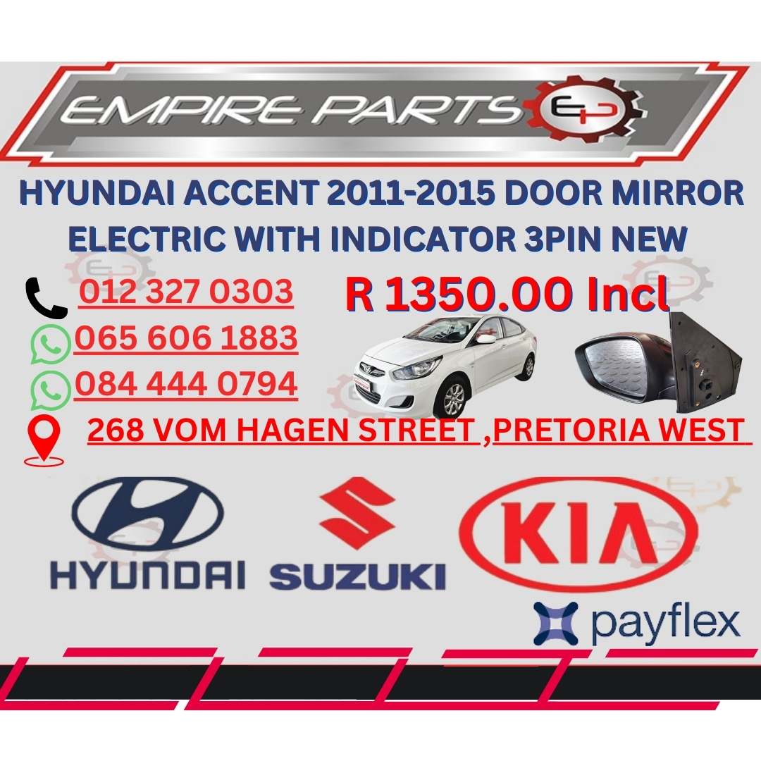 HYUNDAI ACCENT 2011-2015 DOOR MIRROR ELECTRIC WITH INDICATOR 3PIN NEW FOR SALE* *HYUNDAI ACCENT 2011-2015 DOOR MIRROR ELECTRIC WITH INDICATOR 3PIN NEW FOR SALE*. More details: