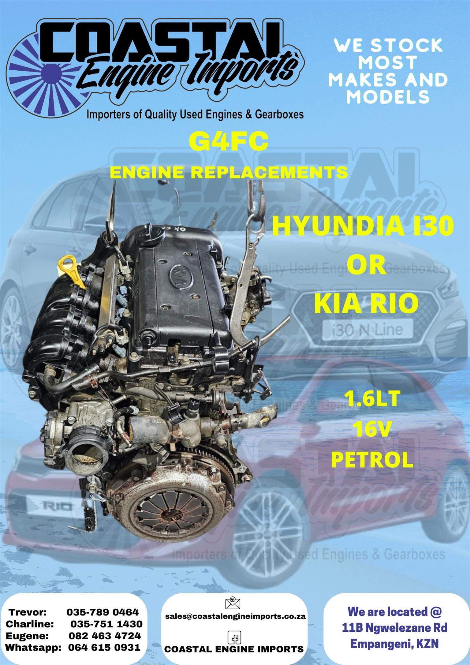 HYUNDAI I30/ KIA RIO 1.6LT 16 - G4FC ENGINE COMPLETE HYUNDAI I30/ KIA RIO 1.6LT 16 - G4FC ENGINE COMPLETE