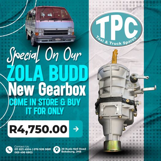 Join in the Special on a new Zola Budd Gearbox Join in the Special on a new Zola Budd Gearbox that you can buy for only R4,750. Get this affordable deal now at Truck Part Centre (TPC)