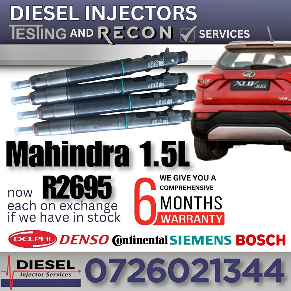Mahindra 1.5L diesel injectors for sale Does your VEHICLE have power loss, black smoke, hard start, unusual engine noise or Engine misfire? We offer: 1. Tested & recon services for peak performance and reliable power 2. Detailed Test reports for complete...