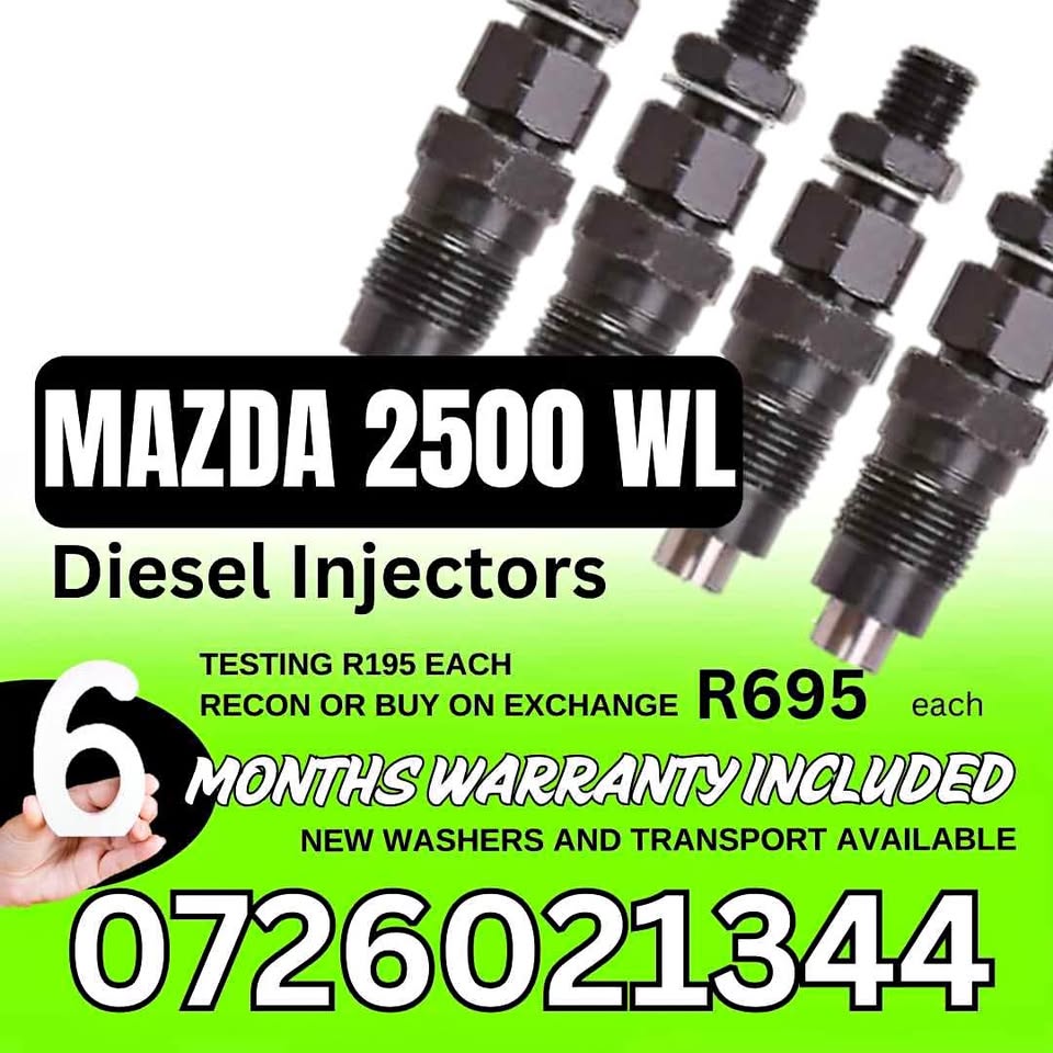 Mazda 2500 WL diesel injectors for sale Does your vehicle have power loss, black smoke, hard start, unusual engine noise or Engine misfire? LET US HELP YOU WITH YOUR DIESEL INJECTORS. We can recon your original injectors for an affordable price or sell u ser...