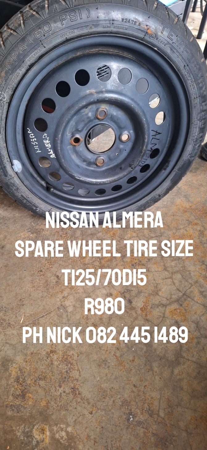 Nissan almera spare wheel Nissan almera spare wheel tire good condition contact nick 082 4451489 more info