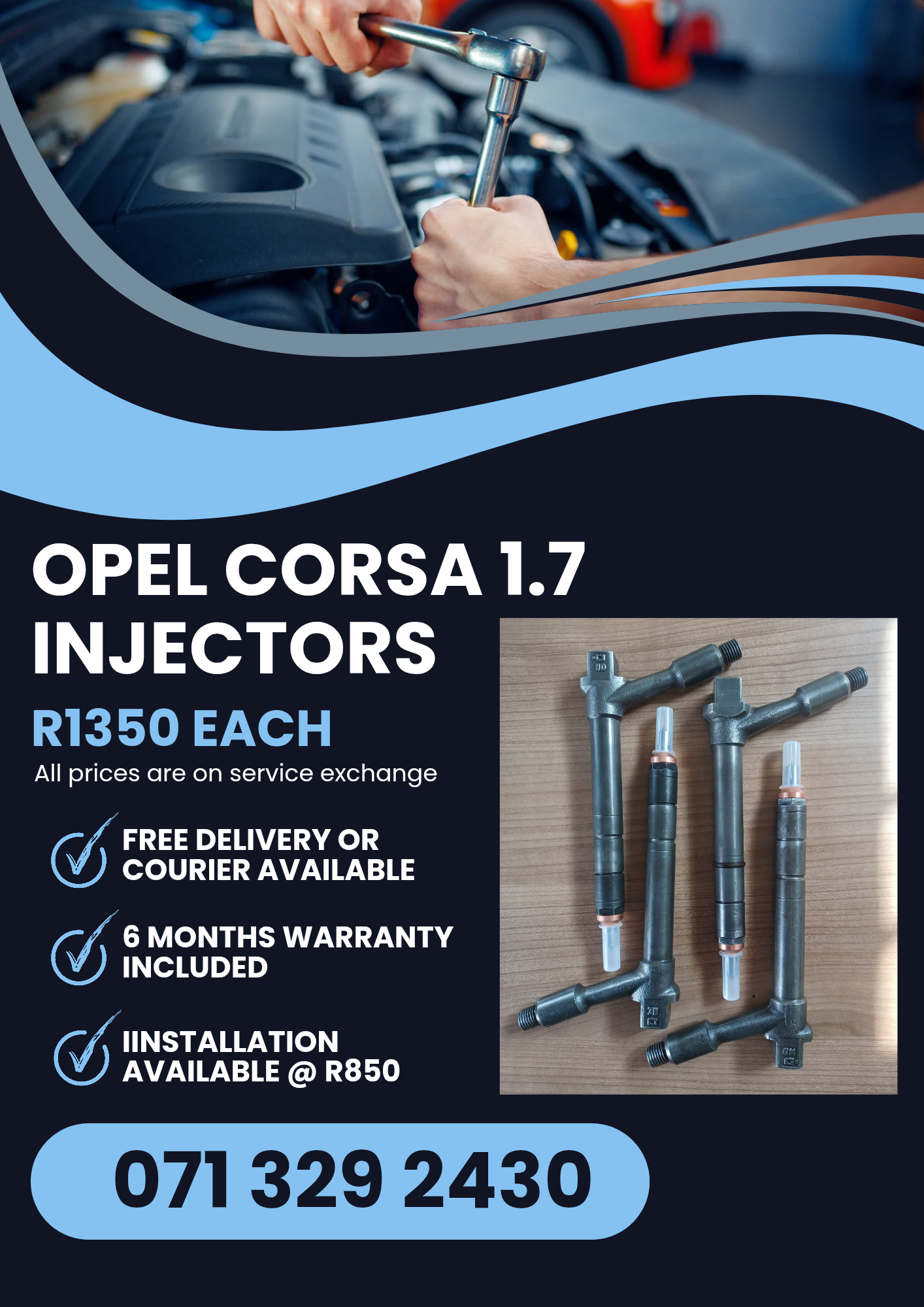 OPEL CORSA 1.7 INJECTORS FOR SALE WITH WARRANTY Does your vehicle have power loss, black smoke, hard start, unusual engine noise or engine misfire?