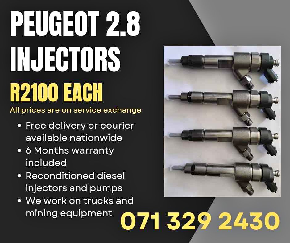 PEUGEOT 2.8 INJECTORS FOR SALE WITH WARRANTY Does you vehicle have power loss, black smoke, hard start, unusual engine noise or Engine misfire? We can recon your original injectors for an affordable price or sell u injectors on service exchange. We also reconditi...