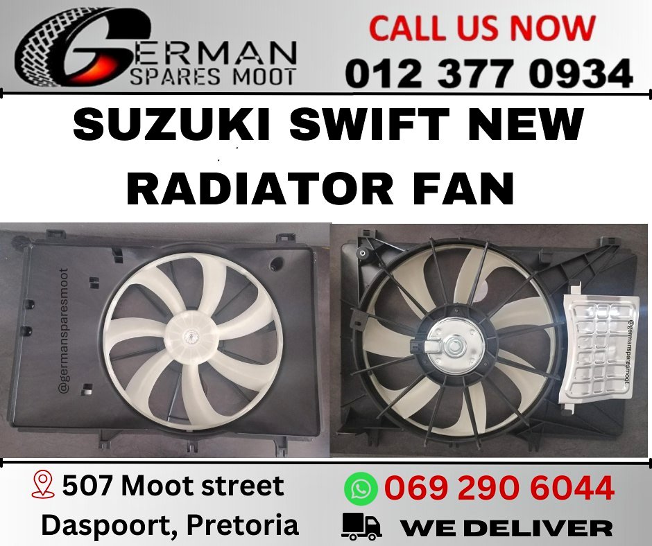 Suzuki Swift Radiator Fan Suzuki Swift Radiator Fan – Brand NEW We specialize in Chevrolet, Opel, and Suzuki, offering the largest selection of high-quality new and used spare parts. Contact us now for the best deals. Website: www.germansparesmo...