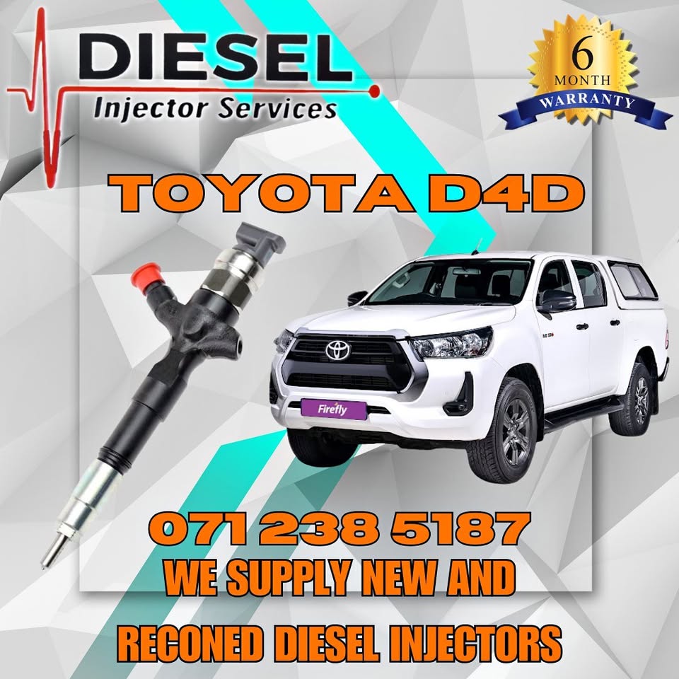 TOYOTA D4D DIESEL INJECTORS FOR SALE OR RECON Does your vehicle have power loss, black smoke, hard start, unusual engine noise or Engine misfire? LET US HELP YOU WITH YOUR DIESEL INJECTORS. We can recon your original injectors for an affordable price or sell u a se...