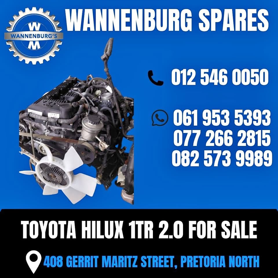 TOYOTA HILUX 1TR ENGINE FOR SALE TOYOTA HILUX 1TR ENGINE FOR SALE!! CALL OR WHATSAPP /012 546 0050 408 GERRIT MARITZ STREET, PRETORIA NORTH.