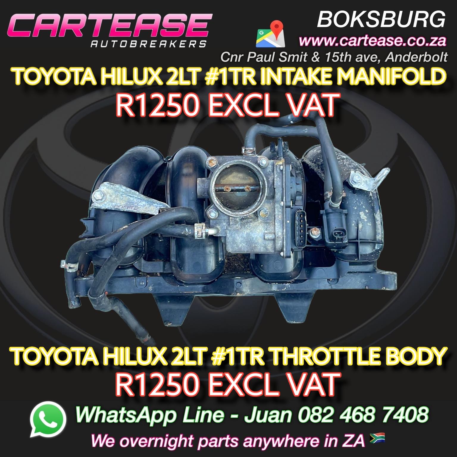 TOYOTA HILUX 2LT #1TR INTAKE MANIFOLD TOYOTA HILUX 2LT #1TR INTAKE MANIFOLD R1250 EXCL VAT /THROTTLE BODY R1250 EXCL VAT
