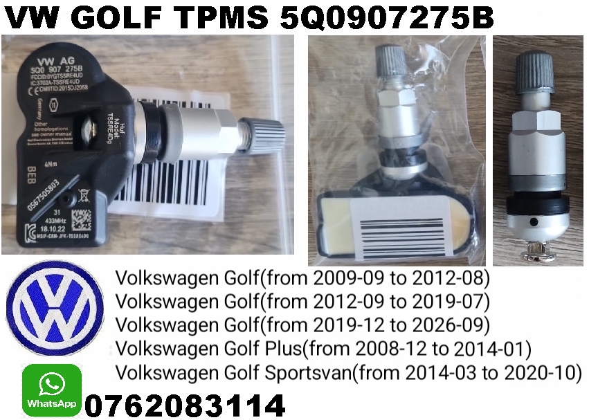 VW Golf TPMS tyre pressure monitor sensors 2009 - 2025 VW Golf Tyre Pressure Monitor sensors / TPMS sensors and replacement aluminium valve stems. The sensor part number is 5Q0907275B. These are brand new 433Mhz OEM sensors that are suitable for many models manuf...